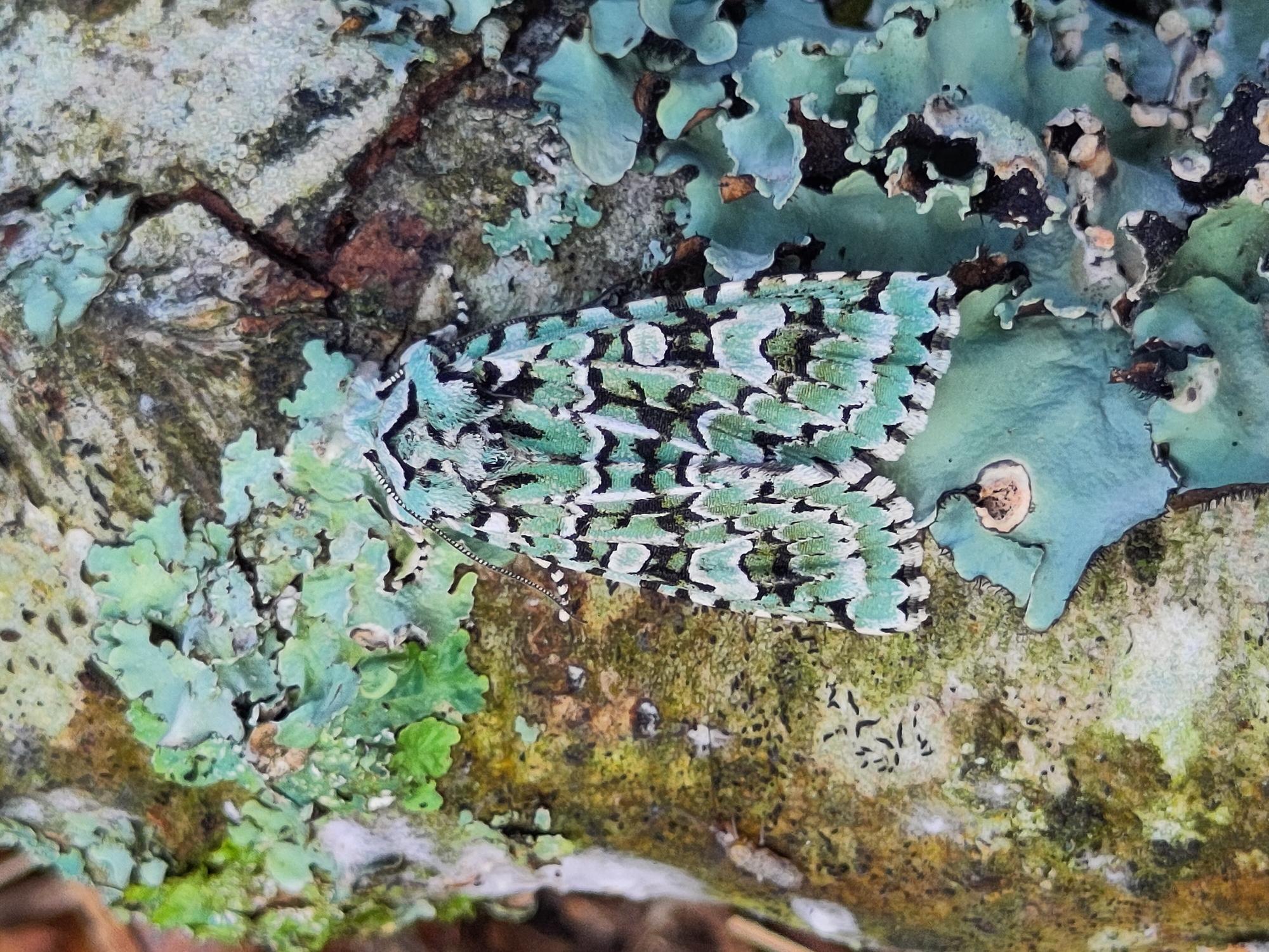 We put a moth trap out in Rosemary Lane wood the night of 29thth September 2025 and got our best collection yet. The star was this Merveille du Jour (Griposia aprilina) which is beautfully camouflaged amongst lichen. We also caught Barred Sallow (Tiliacea aurago), Brindled Green (Dryobotodes eremita), Maiden’s Blush (Cyclophora punctaria), Large Yellow Underwing (Noctua pronuba), Oak Lutestring (Cymatophorina diluta), Lunar Underwing (Agrochola lunosa), Autumnal Rustic (Paradiarsia glareosa), Northern Deep-brown Dart (Aporophyla lueneburgensis). These can all be seen together with some we were less sure of on iNaturalist